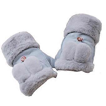 Uudet talviset paksuuntuvat lämpimät kanikorvaläppähanskat naisten mokkanahkaiset näppäimistökäsineet puolisormelle (harmaat)