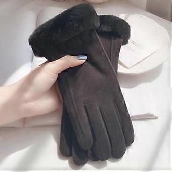 Simple temperament, and velvet anti cold touch screen riding windproof,Korean version of warm gloves for women's winter fashion