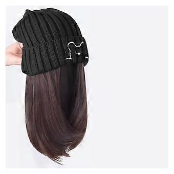 Wig Hat for Women with Hair Extensions, Beanie Style, BuiltIn Wig, Natural Black Brown Color