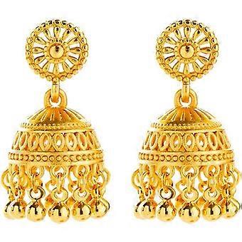 Pyöreät Jhumki-kellohelmikorvakorut, roikkuvat helmillä koristellut korvakorut naisille, kullatut pienet vintage-etniset boheemit ontot Jhumka-pyöreät kellot, tupsukoristeiset Dan-korvakorut