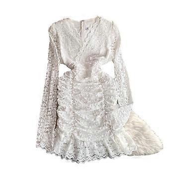 Nightclub Dress, Spring Dress For Women, See-Through Mesh Long-Sleeved, Clever Pleated, Short, Body-Hugging Dress