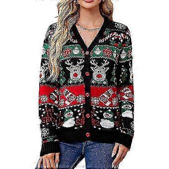 Naisten ruma jouluinen neuletakki, jouluinen hauska joulunappineuletakki, ulkovaatteet 25-26