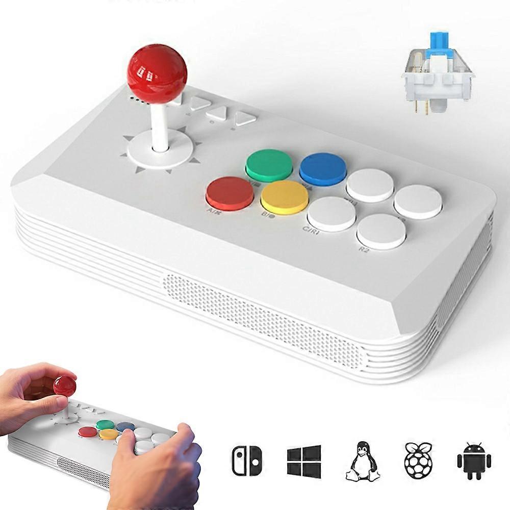 •【Multi-Platform Compatibility】Supports Bluetooth, 2.4GHz wireless, and wired connections for seamless gaming on PC, Android, iOS, for Nintendo Switch, PS3, and M8 consoles, etc. •【Customizable Controls & Turbo Function】Features a TURBO mode and adjustable joystick settings (D-pad, Left Stick, Right Stick), allowing for responsive and personalized control in all types of games. •【Blue Mechanical Switches】Equipped with high-sensitivity blue switches for crisp tactile feedback and precise input, delivering an authentic arcade-style fighting experience. •【Durable & Anti-Ghosting Design】Constructed with premium ABS buttons that resist wear and slippage. Anti-ghosting technology ensures accurate, conflict-free inputs even during intense gameplay. •【Compact & Portable】Lightweight and space-saving design ensures comfort during long sessions and makes it easy to carry for gaming on the go. Compatible with: •For Windows devices: desktop computers, laptops, Win tablets •For Nintendo Switch game consoles •For PS3 game consoles •For M8 game consoles •For Android devices: Android phones, Android tablets, Android TVs, Android projectors •For iOS devices: for iPhone, for iPad Package included: •1 x Arcade Game Station •1 x Wireless Receiver •1 x Charging Cable •1 x Multi-language User Manual (Chinese, English, Korean, Spanish, Russian)