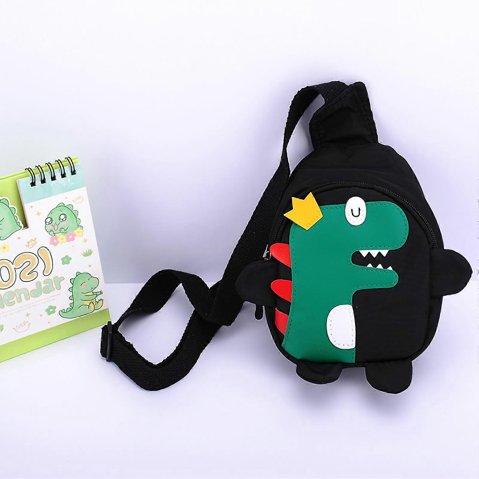 Cute Small Dinosaur Shoulder Bag Portable Cartoon Chest Daypack With Adjustable Shoulder Strap for Kids Black