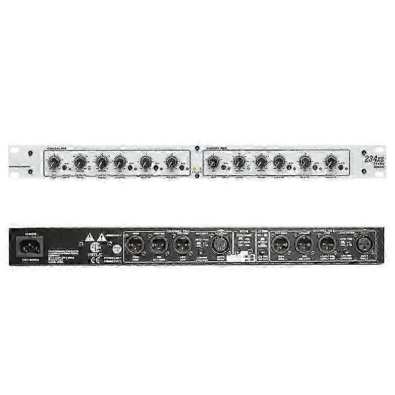 234XS Crossover Stereo 2-Way or 3-Way Electronic Crossover Mono 4-Way Audio Crossover Device for DBXMore sound to your amps and speakers.The secret to making speakers sound great lies with the crossover you use. With the 234xs Crossover youand 39<br> ll get great performance, ultra low-noise, rugged reliability and four decades of knowledge and expertise in building the worldand 39<br> s finest processors. The 234xs uses precision filters to separate the audio signal and direct the correct frequencies to your loudspeaker drivers. By directing only the specific frequency bands to each speaker driver the 234xs leaves your amplifiers free to use their full power on the usable signal eliminating distortion and giving your PA system a cleaner and better sound.The 234xs is a dual channel crossover with all the features you would expect from a professional product. It features Linkwitz-Riley 24dB per octave filters, independent output gain controls for level matching, output phase inversion, 40 Hz low cut filter, and optional mono summing of the low frequency (subwoofer) output. Everything in the design exudes great precision from the solid andquot<br> clickandquot<br> controls to the XLR inputs and outputs.Features:- XLR balanced input and output- Mode switches for mono 4-way or stereo 2-way or 3-way operation- Low frequency summed (subwoofer) output- x10 range switch on both channels- 40Hz high pass (low cut) filter both channels- Phase reverse switch on all outputs- Individual level controls on all outputs- 24dB per octave Linkwitz-Riley filters (the professional standard)- Stereo or Mono status LEDs indicate the selected modeSpecifications:- Input Connectors: XLR- Input Type: Electronically balanced or unbalanced, RF filtered- Input Impedance: Balanced andgt<br> 50k ohm, unbalanced andgt<br> 25k ohm- Max Input: andgt<br> and22dBu balanced or unbalanced- CMRR: andgt<br> 40dB, typically andgt<br> 55dB at 1kHz- Output Connectors: XLR- Output Type: Impedance-balanaced or unbalanced, RF filtered- Output Impedance: Balanced 60 ohm, unbalanced 30 ohm- Max Output: andgt<br> and21dBu balanced or unbalanced into 2k ohms or greater- Bandwidth : 20Hz to 20kHz, 0.5dB- Frequency Response: andlt<br> 3 Hz to andgt<br> 90 kHz, and0 or -3 dB- Signal to Noise Ratio: Ref: and4dBu, 22 kHz measurement bandwidth- Signal-to-Noise (Stereo Mode): andgt<br> 94dB (Low Output), andgt<br> 93dB (Mid Output), andgt<br> 90dB (High Output)- Signal-to-Noise (Mono Mode): andgt<br> 94dB (Low Output, Low or Mid Output)<br> andgt<br> 92dB (High or Mid Output)<br> andgt<br> 88dB (High Output)- Dynamic Range: andgt<br> 106 dB, unweighted, any output- THDandNoise: andlt<br> 0.004 percent at and4dBu, 1 kHz<br> andlt<br> 0.04 percent at and20dBu, 1 kHz- Inter-channel Crosstalk: andlt<br> -80 dB, 20 Hz to 20 kHz- Crossover Frequencies (Stereo Mode: Low or Mid: 45 to 960 Hz or 450 Hz to 9.6 kHz (x10 setting)<br> Low or High: 45 to 960 Hz or 450 Hz to 9.6 kHz (x10 setting)<br> Mid or High 450Hz to 9.6kHz (x10 setting)- Crossover Frequencies (Mono Mode): Low or Low-Mid: 45 to 960 Hz or 450 Hz to 9.6 kHz (x10 setting)<br> Low-Mid or High-Mid: 450 Hz to 9.6 kHz<br> High-Mid or High: 450 Hz to 9.6 kHz- Crossover Filter Type: Linkwitz-Riley, 24 dB or octave, state-variable- Low cut Switch: Activates 40 Hz Butterworth, 12 dB or octave high-pass filter, one switch per channel.- Phase Invert Switch: Inverts the phase at the output, one switch per output.- x1 or x10 Switch: Multiplies the low-high(mono: low or mid and high or mid) crossover frequency range of the front-panel markings by a factor of 1 or 10, one switch per channel.- Mode Switch: Selects stereo or mono and 2 or 3 or 4-way operation- LF Sum Switch: Selects normal (stereo) or mono-summed low frequency operation and disables Ch 2and 39<br> s low output phase invert LED to indicate that this output is not operational in the LF sum mode.- Indicators: Stereo Operation (Green)<br> Mono Operation (Yellow)<br> Low Cut (Red-per channel)<br> x10 (Green-per channel)<br> Phase Invert (Red-per output)- Operating Voltage: 100-120 VAC 50 or 60Hz<br> 120 VAC 60Hz 230 VAC 50 or 60Hz- Operating Temperature: 32F to 113F (0C to 45C)- Power Consumption: 15W- Power Connector: IEC receptacle- Dimensions: 1.75andquot<br> H x 19andquot<br> W x 6.9andquot<br> D (4.4cm x 48.3cm x 17.5cm)Package Included:- 1 x Crossover- 1 x Power Cable- 1 x User Manual