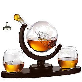 Whiskey Decanter Set with GlobeShaped Design, 850ml Lead Glass and 2 Glasses