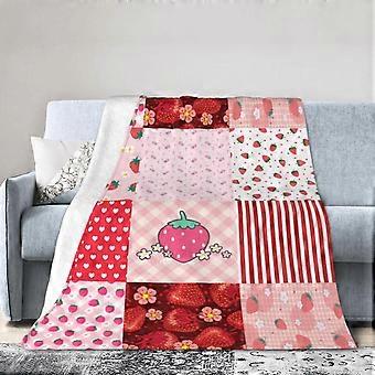 Suuri mansikkakuvioinen fleecehuopa 80x60 pehmeä plyysi vuodesohvalle sisä- ja ulkotiloihin