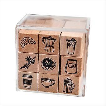 9 kpl/setti söpöjä sarjakuva minikuvioisia puisia leimasimia B