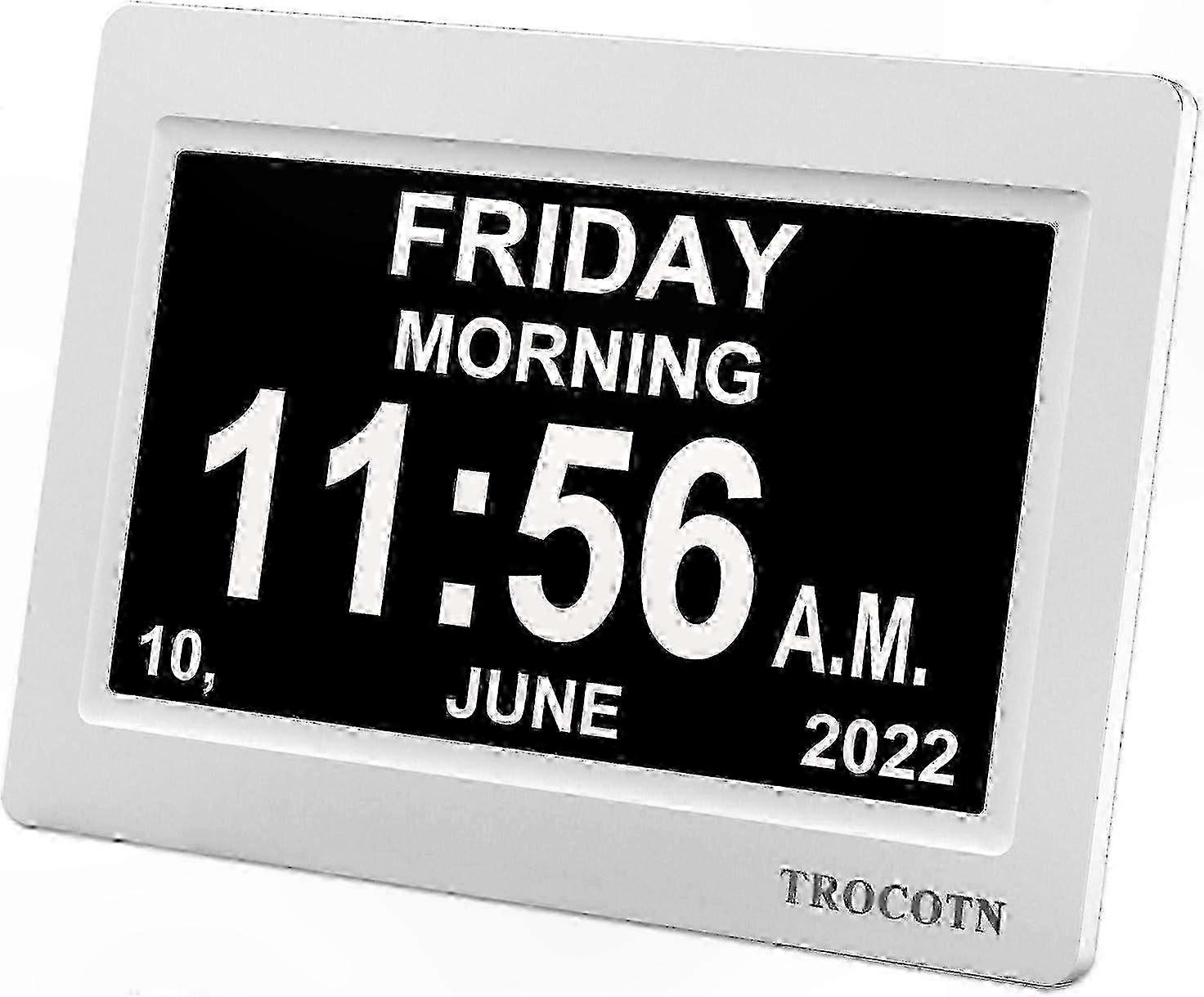 Digital Clock 7 Inch White with Date and Weekly Calendar Display