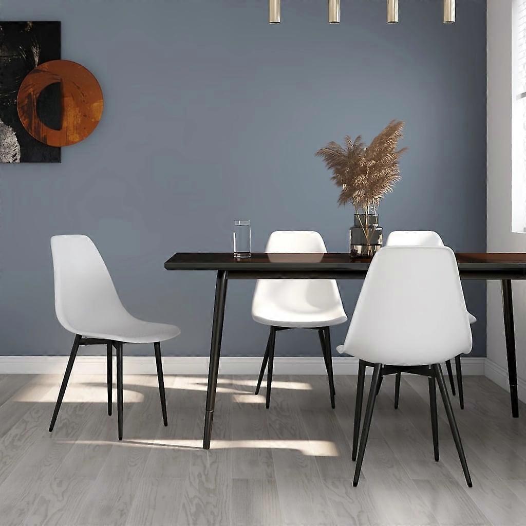 Bringen Sie einen Hauch von zeitgenössischem Charme in Ihre Inneneinrichtung mit diesen Esszimmerstühlen in minimalistischem Design Diese Esszimmerstühle bestehen aus Polypropylen und sind daher leicht zu reinigen. Darüber hinaus verleihen die Metallbeine den Küchenstühlen zusätzliche Robustheit und Stabilität. Ausgestattet mit einer ergonomisch geschwungenen Rückenlehne sorgt der Stuhl für höchsten Sitzkomfort. Farbe: WeißMaterial: PP (Polypropylen), pulverbeschichtetes MetallAbmessungen: 46 x 52 x 84 cm (B x T x H)Sitztiefe: 38 cmSitzhöhe vom Boden: 47 cmRückenlehnenhöhe vom Sitz: 40 cmZusammenbau erforderlich: JaLieferung enthält:4 x Esszimmerstuhl