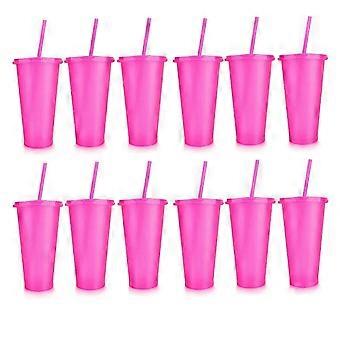 12 قطعة أكواب قابلة لإعادة الاستخدام مع أغطية وقش ، كوب بلاستيكي لامع 24 أونصة لحفلة عيد ميلاد ، عصير عصائر حفلة الشاطئ unbrand
