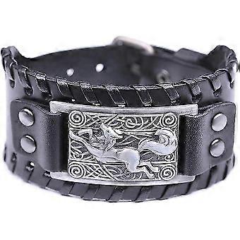 سلتيك عقدة فايكنغ فوكس جلد الكفة سوار قابل للتعديل Blac