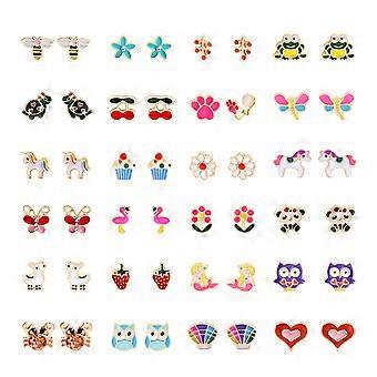Kids Clip on Earrings Cartoon Animal Flower Clip on Earrings for Decoration 50Pairs
