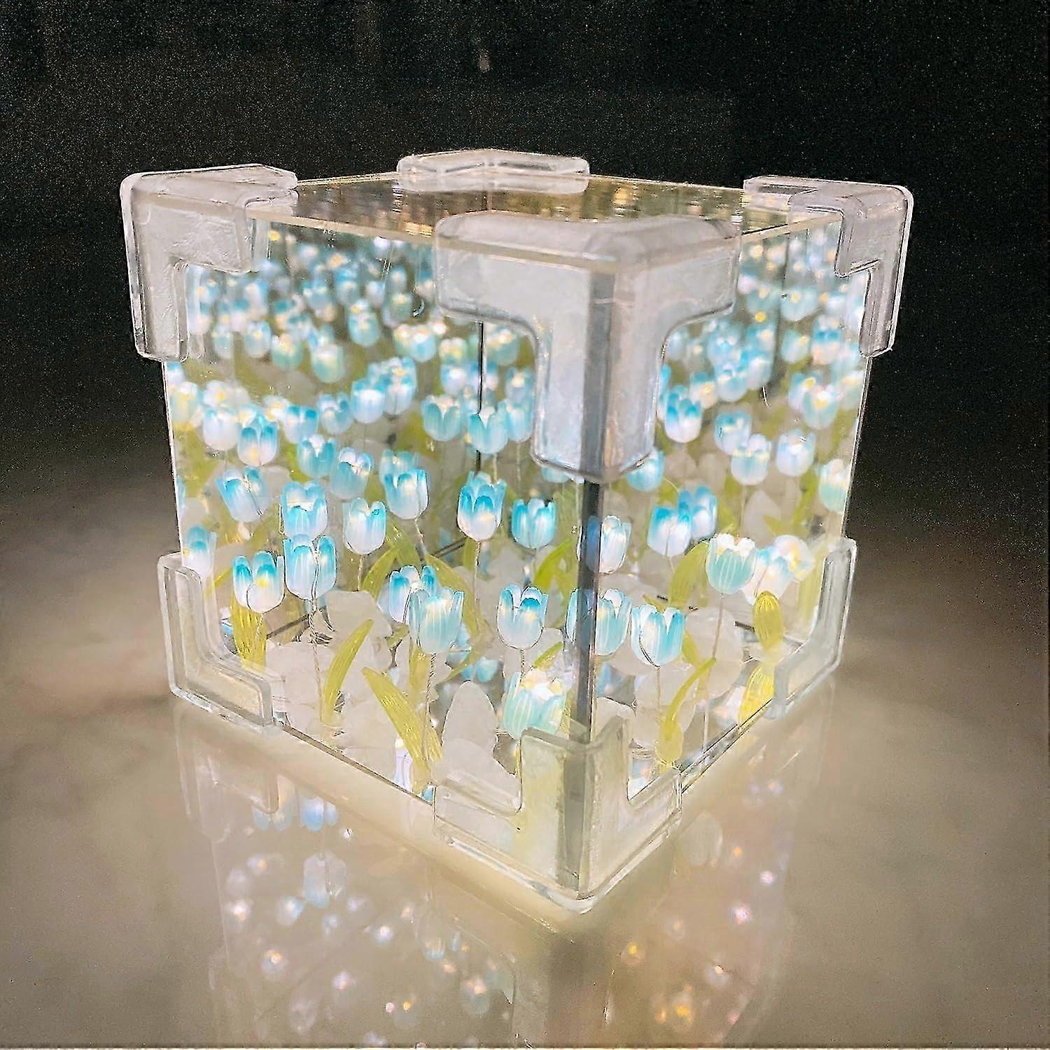 DIY Tulip Night Light LED Table Lamp, Tulip Mirror Night Lamp Material Package, lampara de tulipanes, Flower Artificial Flower Valentines Birthday Gif