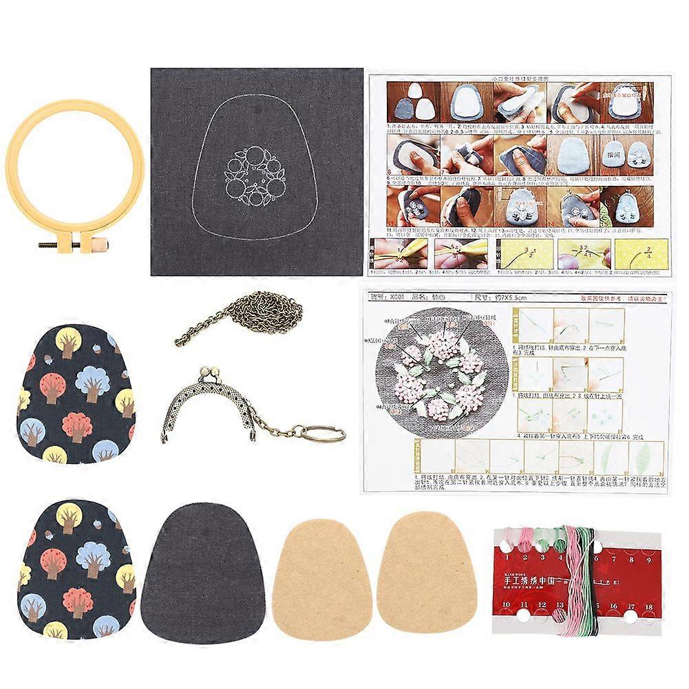 DIY Flower Embroidery Bag Kit DIY Fabric Bag Key Chain Cross Stitch Sets Sewing Craft ToolStyle A
