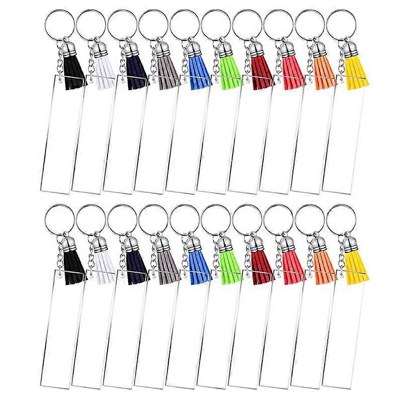 Features: Keychain Making KitIncluding 20pcs rectangle acrylic blanks, 20pcs keychain tassels in different colors,20pcs key rings with extension chain, 20pcs jump rings. High Quality Blank KeychainsOur keychain blanks are made of premium quality acrylic material,clear and lightweight. Practical DIY ProjectsYou can draw, carve, or paste sticker and photos on the both sides of the transparent blank, and use colorful tassels to decorate it. Wide ApplicationsThis keychain making kit is suitable for making key chains, ornaments, gift tags, pendant decorations; or as a decoration for bag, car and more. Great GiftsIt is great for making unique gifts for friends and families in every special days. Package Includes: 1Set x Acrylic Keychain Specifications: Keychain Blanks Color:Clear Tassel Color:Multicolor Metal Color:Silver Material:Acrylic Keychain Blanks Size:2x8x0.2cm/0.79x3.15x0.08in Keychain Tassel Size:1x3.8cm/0.4x1.5in Keychain Rings Size:5.33x2.5cm/2.1x1.0in note: Please allow a little error on the size due to manual measurement. The color might exist slightly difference due to different displays.