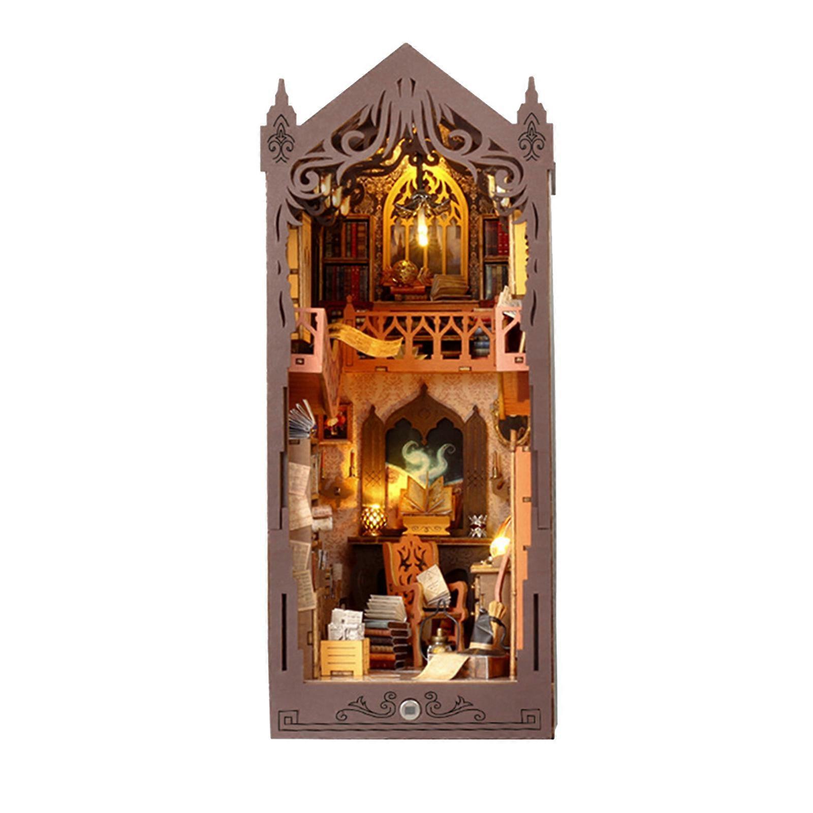 Dollhouse Bookshelf Insert Library Model with Sensor Light 3D Puzzle Set Do It Yourself Handcraft Miniature Craft Multicolor