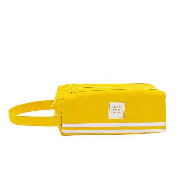 Double layer canvas case with large capacity (yellow), pencil case, storage, organizer.
