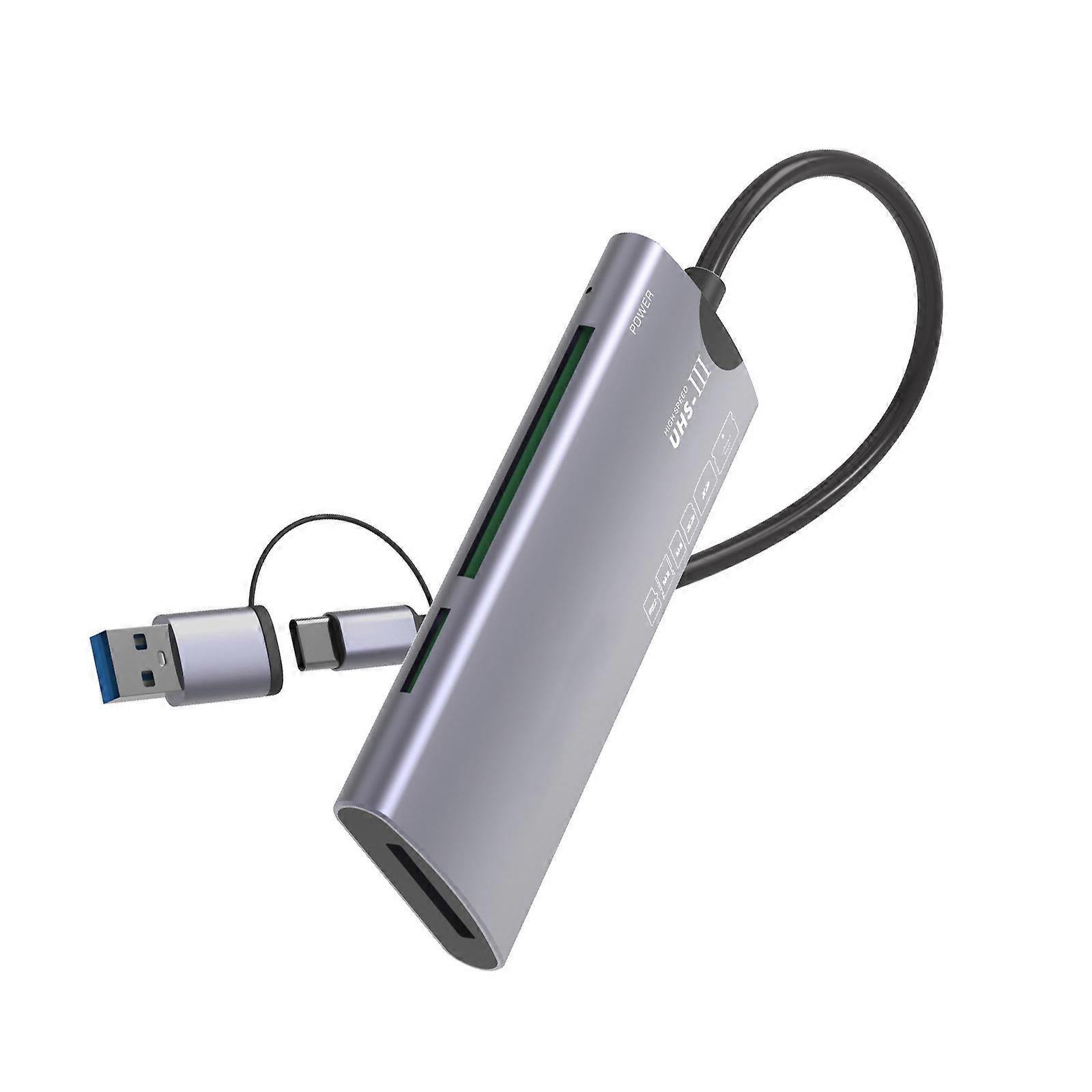 Double USB C and USB A USB3.0 6 in 1 Card Reader Aluminum Alloys Portable Fast Speed OTG for Smartphones Tablets PC Cameras Multicolor