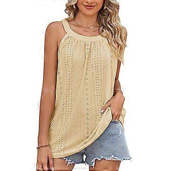 تي شيرت نسائي فضفاض عارضة طاقم الرقبة Ruched Camisole أعلى ثقوب الصيف بلا أكمام بلوزة أصفر L