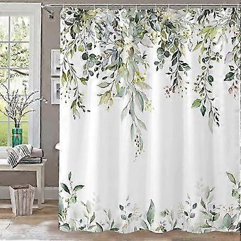 2025 Eukalyptuskasvi -rustiikkinen suihkuverho, vesivärilehdet päällä, maalaistalon suihkuverho, keväinen kasviaiheinen kylpyhuoneen verho 72 72 I
