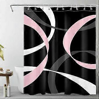 2025 Abstrakti vaaleanpunainen suihkuverho kylpyhuoneeseen, harmaa ja valkoinen raidallinen mustalla taustalla kangas suihkuverho koukuilla, moderni geometrinen kuvio Ae