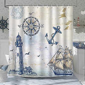 2025 Merenkulun suihkuverho - Majakka Purjelaivo Kompassi Ankkuri Kylpyverho 180x180cm