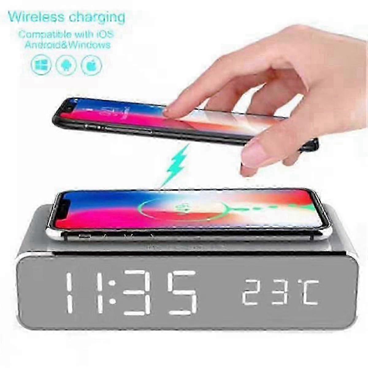 e Mobile Phone Wireless Charger Alarm Clock, Multifunctional LED Temperature Display Qi Wireless Charger Alarm Clock Clock Sleep Timer S