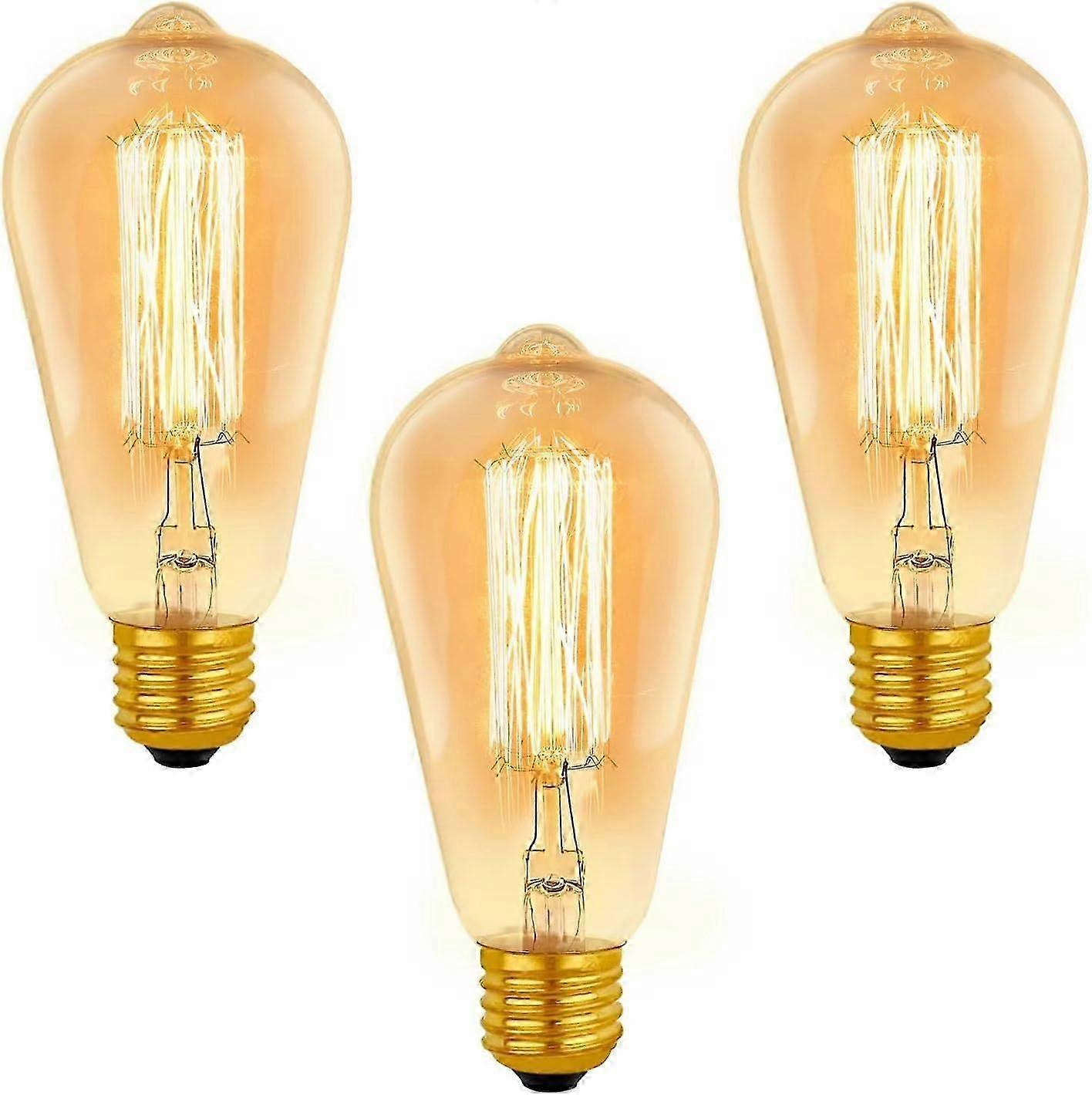 E27 Vintage Bulb ST64 Dimmable 40W Warm White 2200K,400lm, AC 220V, Retro Incandescent Bulb, E27 Vintage Filament Lamp, Pack of 3