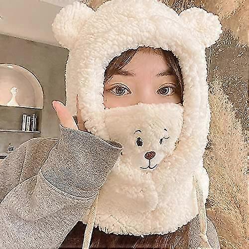 Cartoon Bear Ear Hat Lamb Cap With Warm Mask Winter Skullies Hat Earflap Balaclava Cap Gift For Women Girl