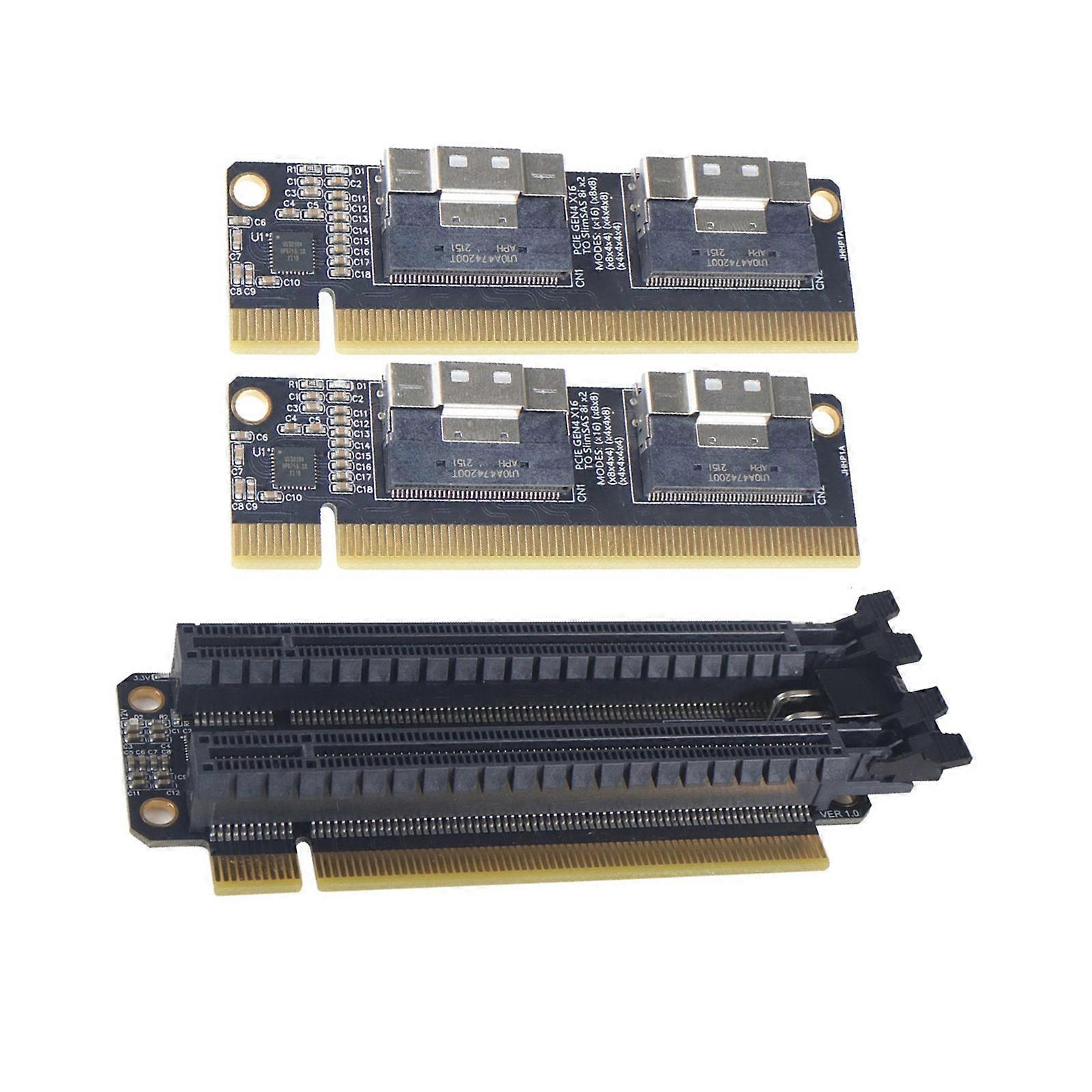 Features: PCIE3.0 X16 full bandwidth, compatible gen4/3 protocol The Gold plated process increases the thickness of gold to 5U. Low profile board designs minimizes size to great extent possible. Equipped with SlimSAS 8i connector. Equipped with power on LED indicator light. Supports transferring 2 ports and 4 ports to 4xnvme SSDs. Supports the transmission of one full bands graphics card or 2pcsX8 bandwidth graphics card. Please note that this product is a third-party accessory and cannot fpr all configurations can achieve Pcie4.0, nor can it compatibility with all mainboards, graphics cards, extension cable, and system. If there is any uncertain information about the product, please confirm with customers service before purchasing. Note: Your mainboard needs to support PCIE split working modes. Please carefully check before purchasing. Specifications: Item: PCIe3.0 x16 to 4 Ports NVMe Expansion Card To SlimSAS 8i x2 SFF8654 Graphics Card GPU SSD Adapter Card Size:approx 11.2x3cm/4.41x1.18in Package Types: Expansion Card/ Package1/Package2 Package Includes: 1PC PCIe3.0 x16 to 4 Ports NVMe Expansion Card note: Due to the problems of lighting effects and shooting angles, there will be certain tolerances in the product, please understand. Please allow 0-1cm error due to the manual measurment.