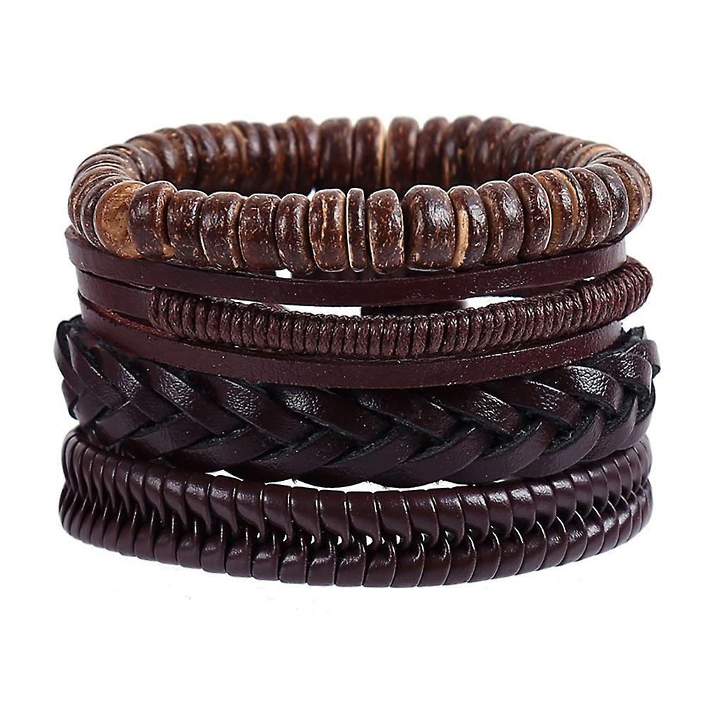 Eif Dock Vintage 4pcs/set Leather Rope Handmade Bead Woven Bracelets Women Bangles Female Homme Men Jewelry Accessories