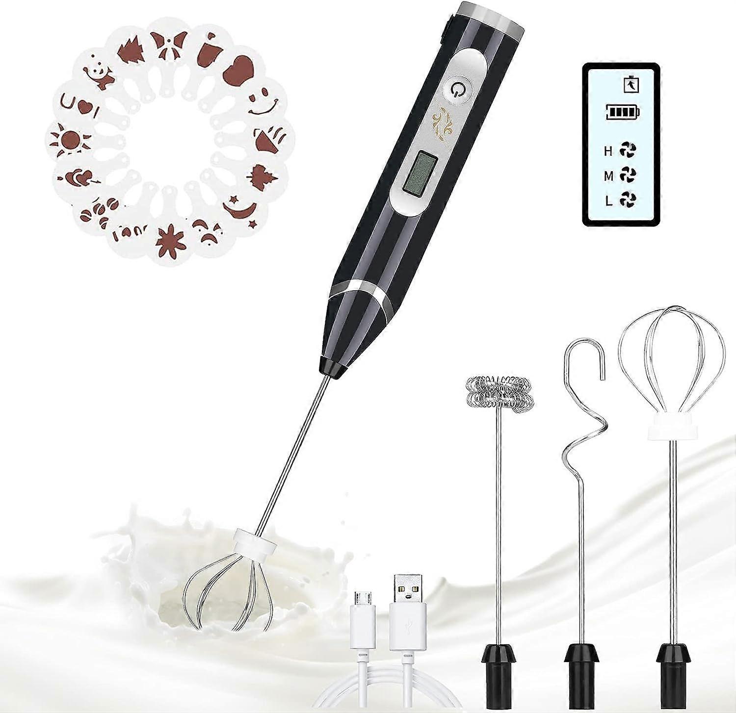 Electric Milk Frother, 3 in 1 LCD Display Milk Frother 3 Speed USB
