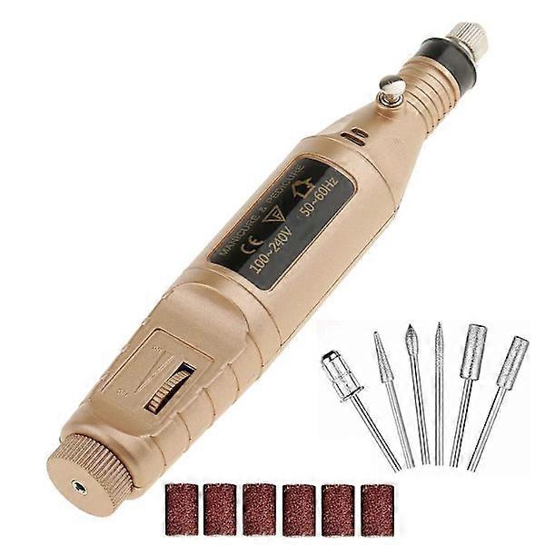 Included Accessories: A sleek, small electric nail file that comes with 6 bits and 6 sandpaper attachments. Particularly suitable for acrylic nail art, but also excellent for other manicures and pedicures. Multiple Functions: With the electric nail file, you can remove calluses, dead skin, and file cuticles, as well as shape, trim, sculpt, buff, polish, and grind your nails. Comfortable Handling: Vibration-dampening and low-noise operation. Ergonomic design for optimal precision and adjustable speed (0-15000 rpm). Note: Connect the power supply for proper function. The product cannot be used wirelessly. Specifications: Size: 15.5 x 3 cm Material: ABS Package includes: 1 x Electric Nail File 6 x Drill Bits 6 x Sanding Bands 1 x Power Supply Manual