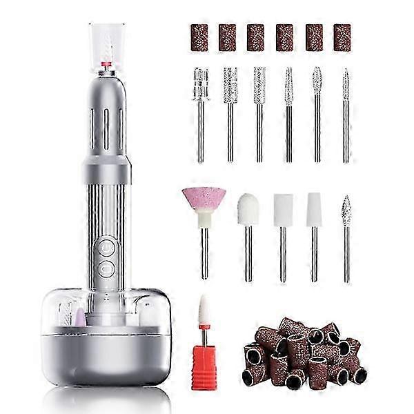 Electric nail file with base, 6 speed settings, 12 nail file bits, 2 charging modes, professional nail file