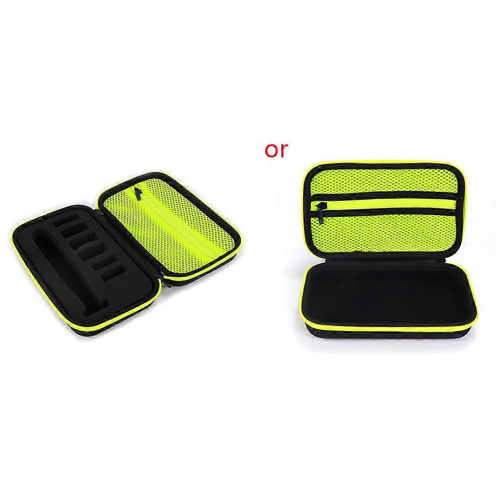 ["Description:\n1.brand new and high quality\n2.Hard EVA material exterior and soft interior provide full for protection against scratches, impacts, spills, and dust\n3.for Extra mesh pocket is designed for managing small accessories (replacement blade, power cords, etc.)\n4.Double zipper design, easy access to your device and accessories, also convenient for opening and closing\n5.Hand wristlet strap makes it easy to carry around\n6.Travel Carrying for Case for Norelco OneBlade Men's hybrid electric trimmer and shavers ( QP2520/90 QP2520/70 QP2630/70 QP2530)\nMaterial:EVA\nSize:18.2*10.7*5.7cm/7.1x4..2x2.2'(approx)\nColor:Black+Green\nQuantity: 1 pc\nNote:\nTransition: 1cm=10mm=0.39inch\nNo retail package.\nPlease allow 1-2cm error due to manual measurement. pls make sure you do not mind before you bid.\nDue to the difference between different monitors, the picture may not reflect the actual color of the item. Thank you!\n\nPackage includes:\n1 x Storage bag(other accessories demo in the picture is not included.)"]