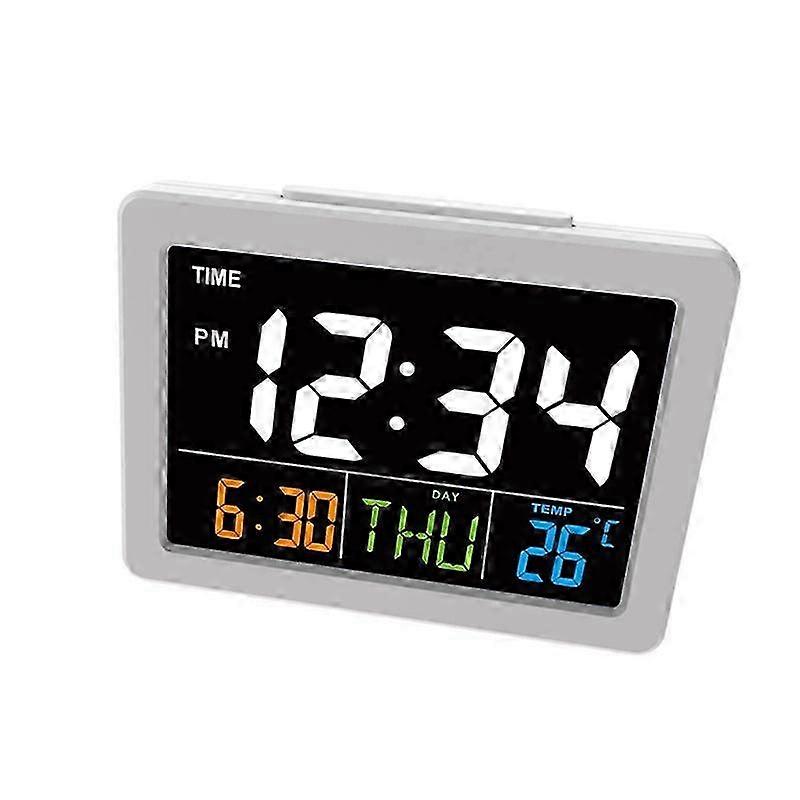 Electronic Desk Alarm Clock, Color Large Screen LCD with Temperature Date Display