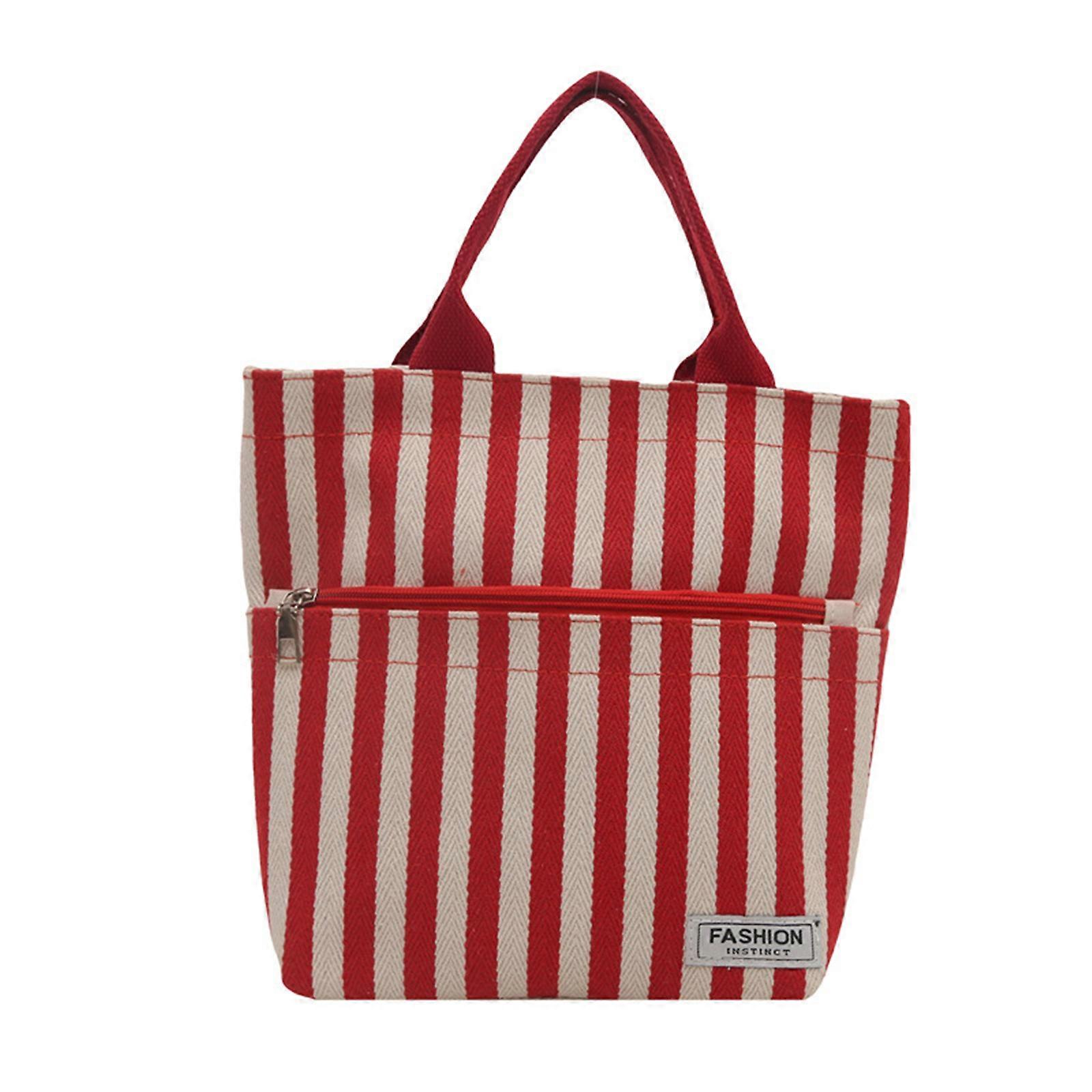 Elegant Striped Canvas Handbag for Women Practical and Spacious Top Handle Bag for Various Occasion Like Work or Dates Red