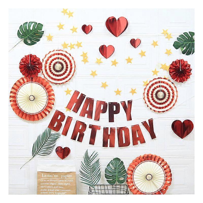 Elosung Happy Birthday Party Decoration Set Fan Decorations Hearts Stars & Banner Banners Bunting & Garlands