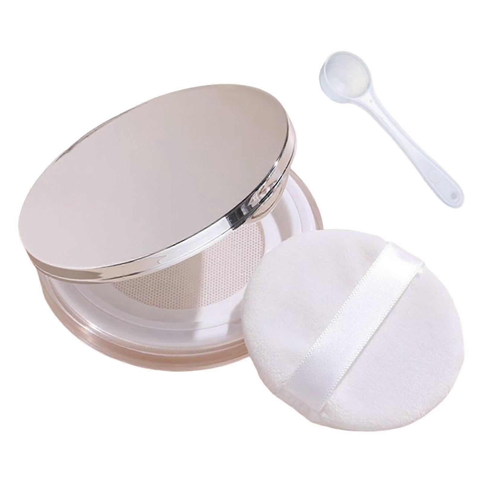 Empty Portable DIY Makeup Powder Case with Powder Puff, Mirror, Net, Spoon for
