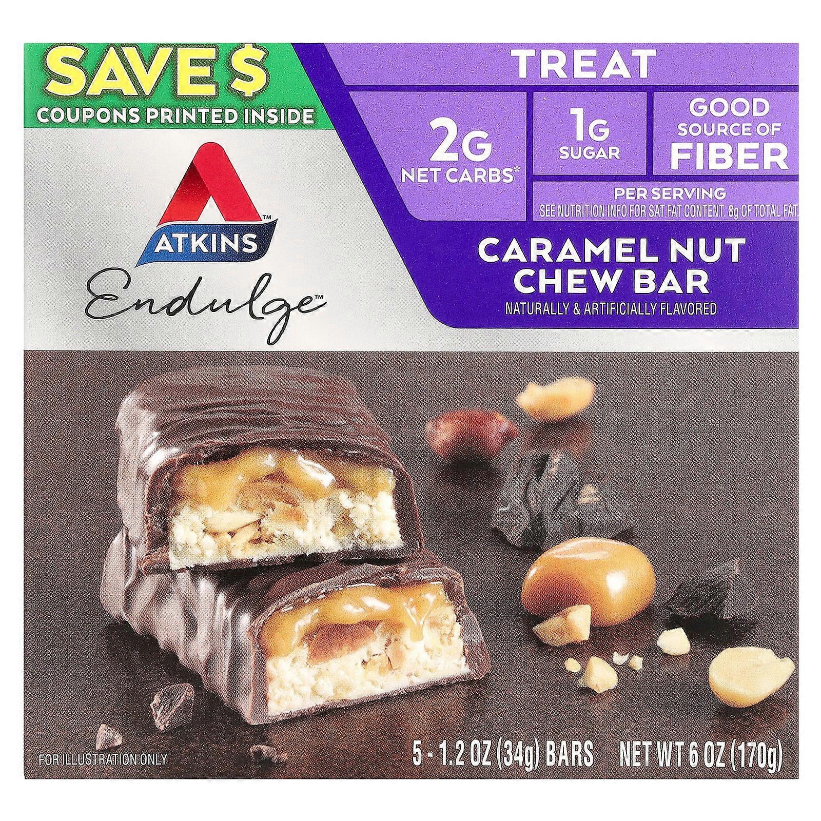 Endulge, Caramel Nut Chew Bar, 5 Bars, 1.2 oz (34 g) Each