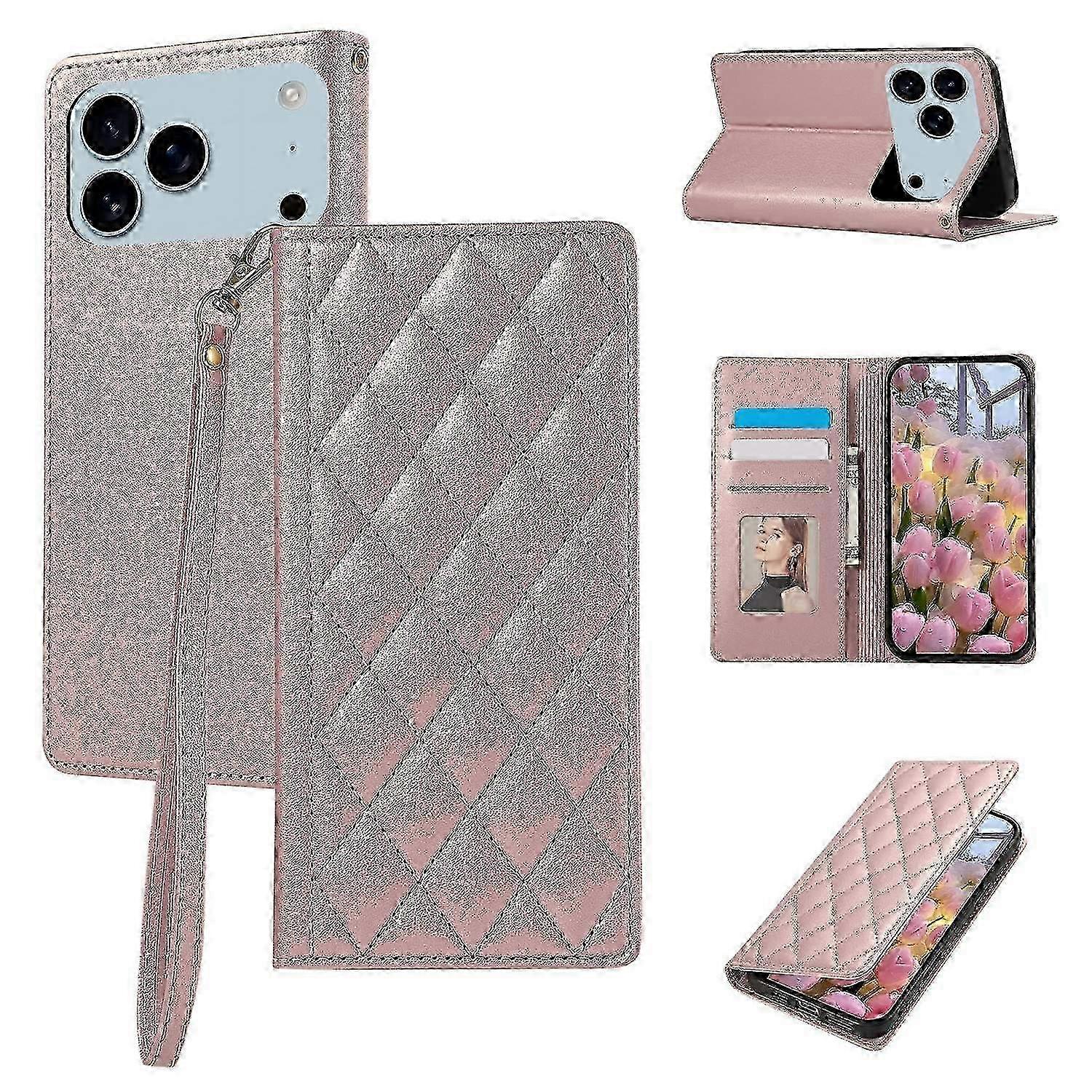 Enhanced iPhone 17 Pro Max Protective Case with RFID Blocking, Diamond Leather & Wrist Strap Stand - Secure Fit for Your Phone