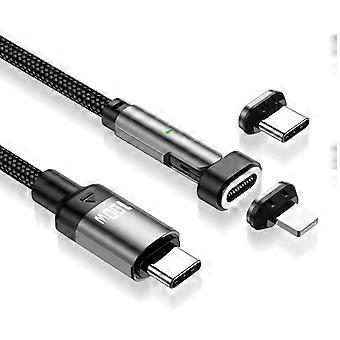 ENKAY 2m 180 Degree Rotation USB-C to Type C/iP 2-in-1 PD 100W/27W Magnetic Charging Cable