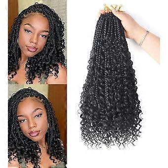 8 Packs Goddess Box Braids Crochet Hair Extensions 14 Inch PreLooped Curly Ends 1B