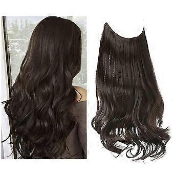 Näkymättömät langalliset hiustenpidennykset naisille, laineikkaat, kiharat, ilman klipsiä, synteettinen hiuslisäke, lämpöä säätelevä kuitu, säädettävä istuvuus, 12 tuumaa, tummanruskea ja kultainen