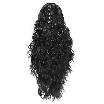 18 Inch Black Water Wave Claw Clip Ponytail Hair Extension, HeatResistant Synthetic Hairpiece