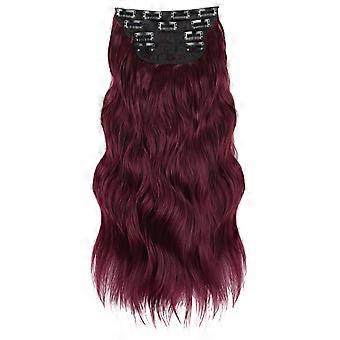 Dark Red 20 Inch Wavy Clip In Hair Extensions Set, Heat Resistant Fiber for Natural Volume