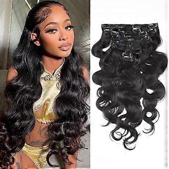 20 Inch Natural Black Clip in Human Hair Extensions Seamless Body Wave Double Weft for Women