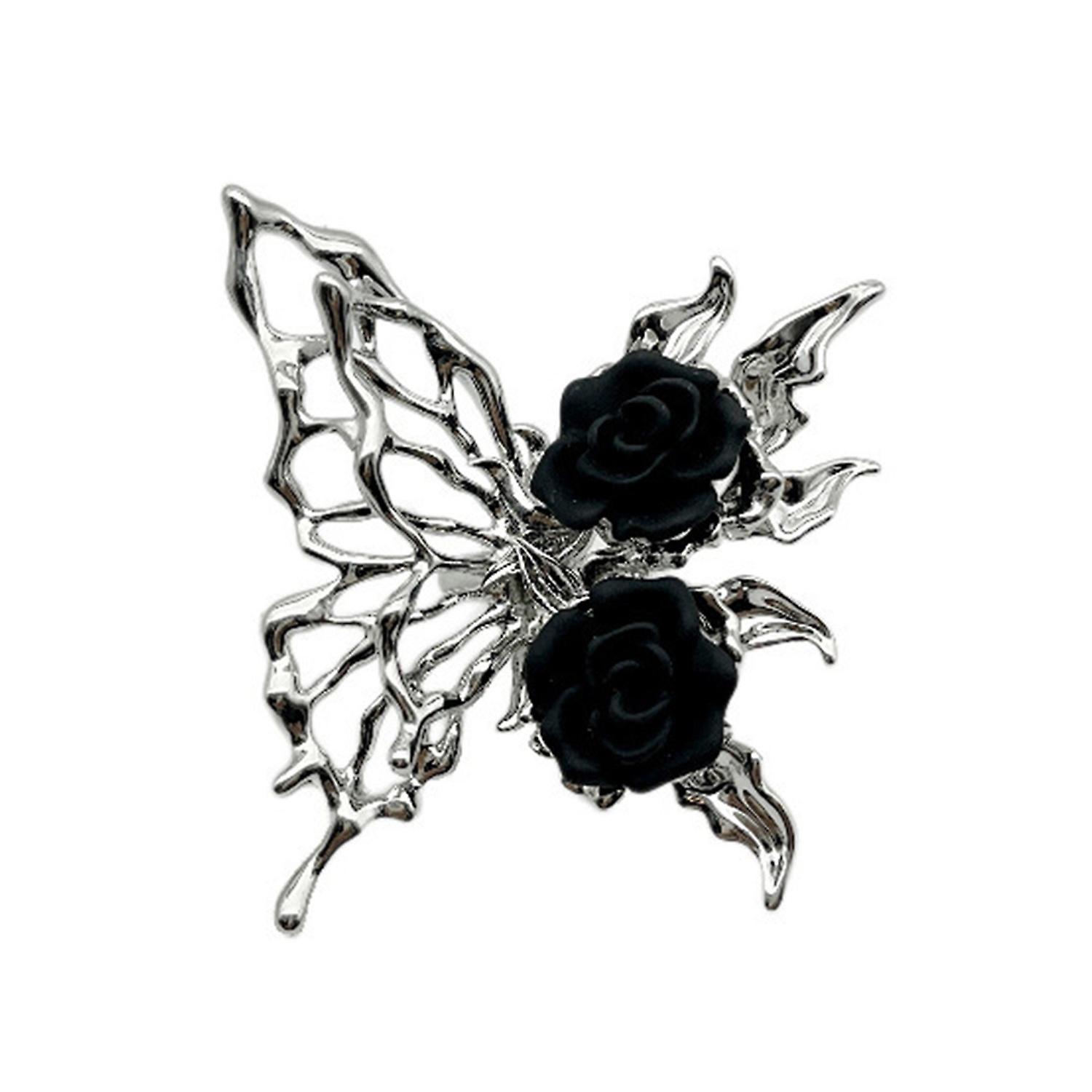 Women Ring Exaggerated Opening Gothic Punk Irregular Gift Rhinestone Hollow Butterflies Black Rose F