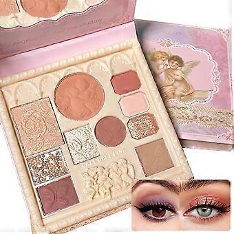 10 Color Eyeshadow Palette with Mirror, Pigmented Waterproof Glitter, Angel Embossed Design